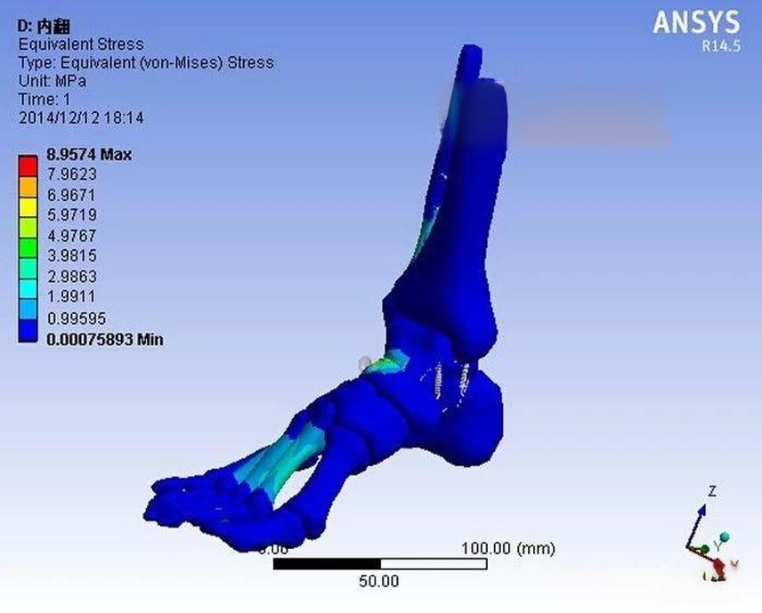 本課題組在前期建立的三維足-踝-鞋計(jì)算生物力學(xué)平臺(tái)基礎(chǔ)上,模擬分析穿高跟鞋平衡站立和行走時(shí)高跟鞋對(duì)前足內(nèi)部跖間區(qū)域軟組織應(yīng)力的改變情況,定量分析足部異常生物力學(xué)誘發(fā)跖間神經(jīng)瘤的機(jī)制。