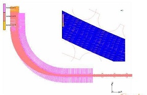 彎頭右側(cè)端面位移為0,因此對(duì)彎頭右側(cè)端面施加全約束,即ALLDOF此三維有限元模型為彎頭接管完整結(jié)構(gòu)的1/2根據(jù)其對(duì)稱(chēng)性,在彎頭和鍛件接管的對(duì)稱(chēng)面上施加對(duì)稱(chēng)約束。